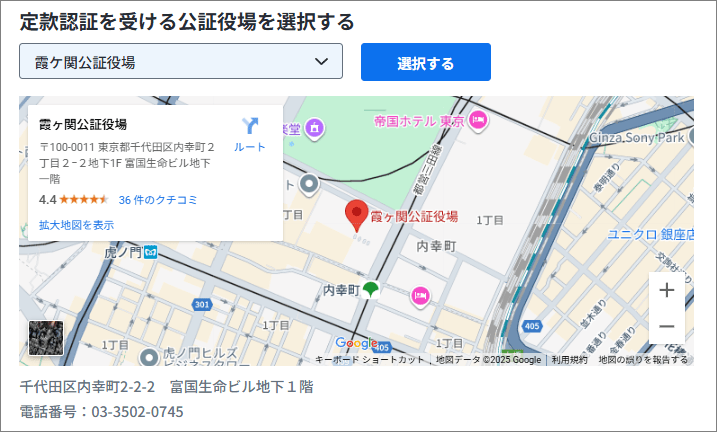 表示された公証役場の中から定款認証を受ける公証役場を選択します。