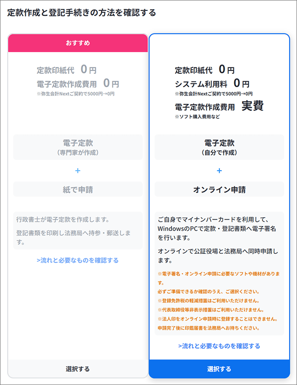 (3)定款作成と登記手続きの方法を選択する(STEP1-12)