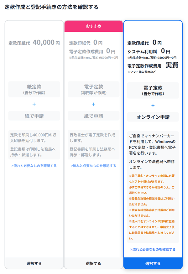(3)定款作成と登記手続きの方法を選択する(STEP1-10)