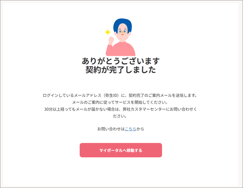 以下の画面が表示されれば、契約完了です。事業者情報で変更したい箇所がある場合は、「2.事業者情報の変更手順」をご確認ください。