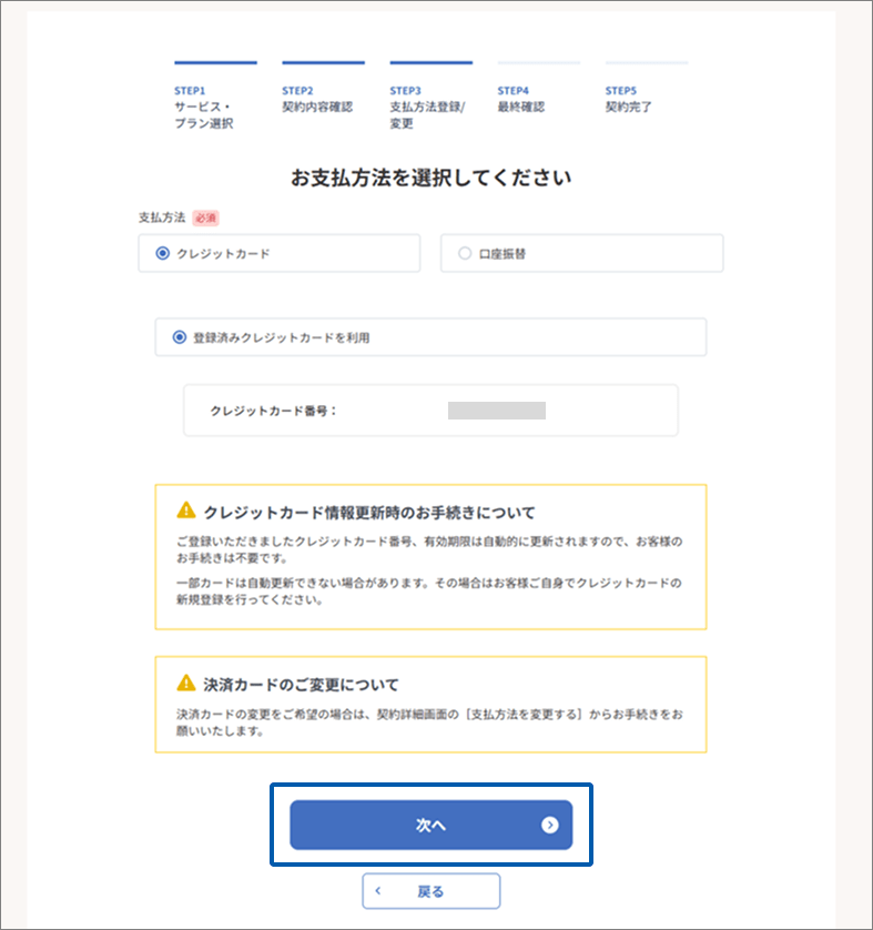 他のサービス等で登録した内容があれば、入力された状態で表示されます。問題なければ「次へ」を選択。