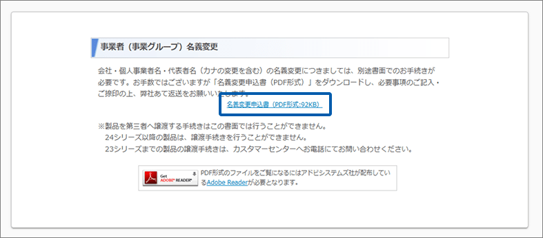 個人事業主から法人に名義を変えて良い場合は、内容を確認の上「次へ」を選択します。